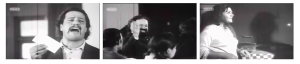 نمای بعد: حکمتی وارد خانهاش میشود و کتابخانهاش را به زمین میکوبد. نمای بعد: زن صاحبخانه با نگرانی صدای بر هم خوردنِ کتابخانه را تعقیب میکند. نمای بعد: یکی از دانش آموزان پوستر یک فیلمفارسی ( احتمالا فیلم سه دیوانه) را پاره میکند و میگریزد. نمای بعد: آغاز سکانسِ امتحان دانش آموزان و تقلبِ آنها.